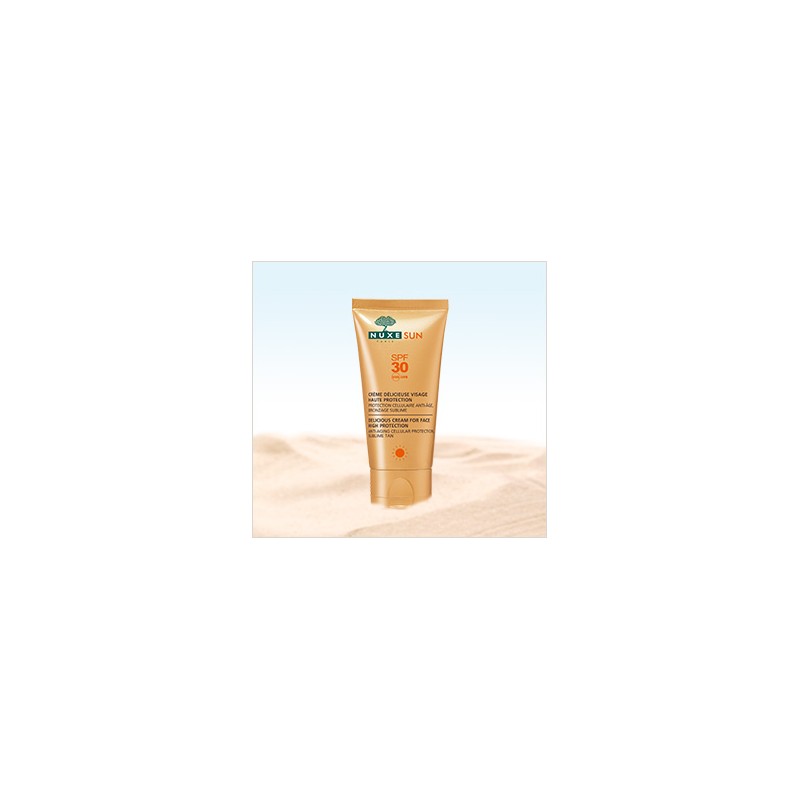 Envoyez-nous votre ordonnance Une crème délicieuse visage NUXE SUN SPF 30 avec une protection cellulaire anti-âge pour un bronzage sublime.